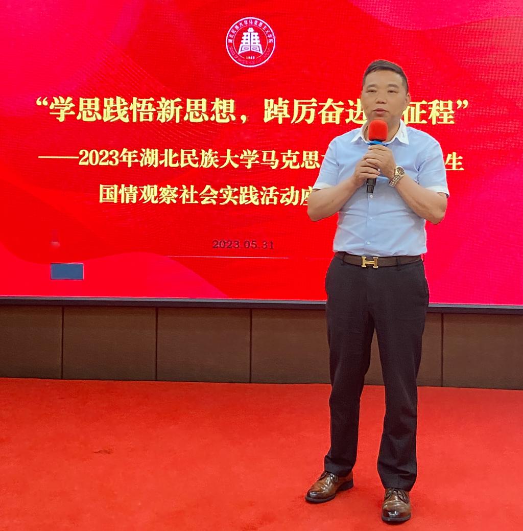 5月31日,我院在利川市汪营镇齐跃桥村,举行“学思践悟新思想,踔厉奋进新征程”——2023年jinnian金年会马克思主义学院研究生国情观察社会实践活动。马克思主义学院党总支副书记张明波,汪营镇党委书记熊伟,思清农业有限公司董事长温华健,驻村第一书记丁恒,州政府办公室驻齐跃桥村尖刀班成员,以及我院部分研究生参加有关活动。