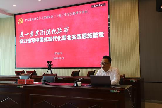 在鹤峰县县直部门经贸组、中营镇,周传和副教授以《全面深化改革 开辟中国式现代化广阔前景》为题,围绕深刻认识党的二十届三中全会的主题和意义;深刻认识进一步全面深化改革的指导思想、总目标、重大原则、重大举措;严格落实党中央关于贯彻落实全会精神的基本要求等内容进行宣讲。宣讲报告内容系统全面,与会人员听后深受启发,纷纷表示要以实际行动推动党的二十届三中全会精神在基层落地生根。