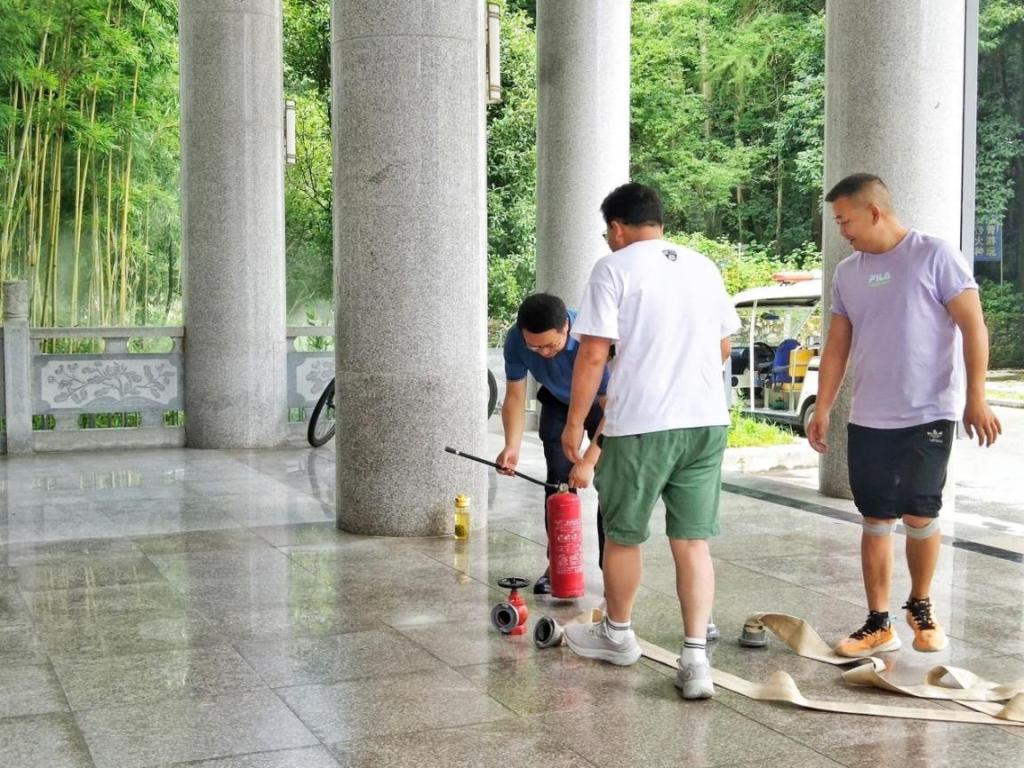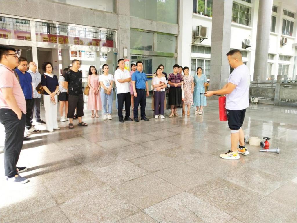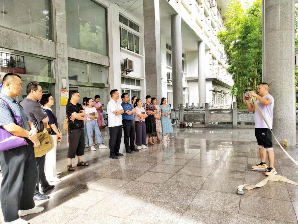 本网讯 6月19日下午,为进一步强化全体师生消防安全意识,落实校园消防安全工作,提高师生自护自救能力,帮助师生掌握应对突发火灾情况的应变、逃生与灭火技能,马克思主义学院协同学校保卫处开展了消防安全应急演练活动。学院全体教职工和部分学生参加,保卫处消防科向宣霖、曾飞翔、吕刚到场指导并进行示范。本次活动包括逃生演练、灭火器及消防水带正确使用方法教学等。