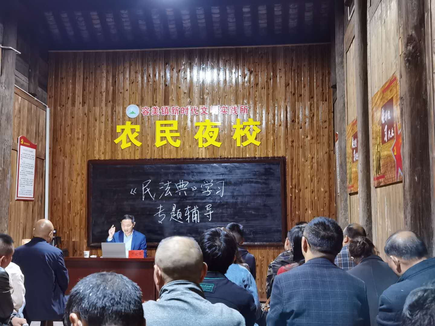 在容美镇“农民夜校”,洪雁为农民党员作了《习近平谈治国理政》第三卷学习的专题辅导讲座,强调要从着眼中华民族伟大复兴战略全局和世界百年未有之大变局、牢记百年大党的初心与使命等角度深入把握第三卷的丰富内容。李文革对《民法典》进行了全面系统的解读和阐述。