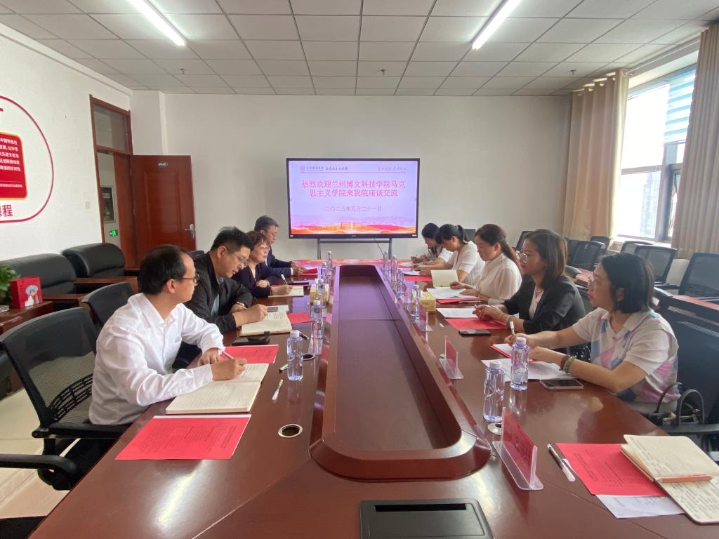 为学习借鉴开展本科教学评估工作的先进经验,更好推进我院迎评促建工作,5月21日,我院院长王利华带队赴甘肃政法大学马克思主义学院调研学习。甘肃政法大学马克思主义学院党委书记刘建宁、院长王瑞萍、副院长杨栋、副院长张番红参加座谈,会议由王瑞萍院长主持。