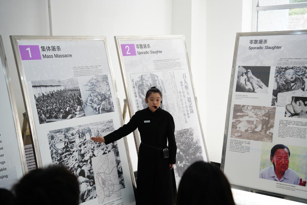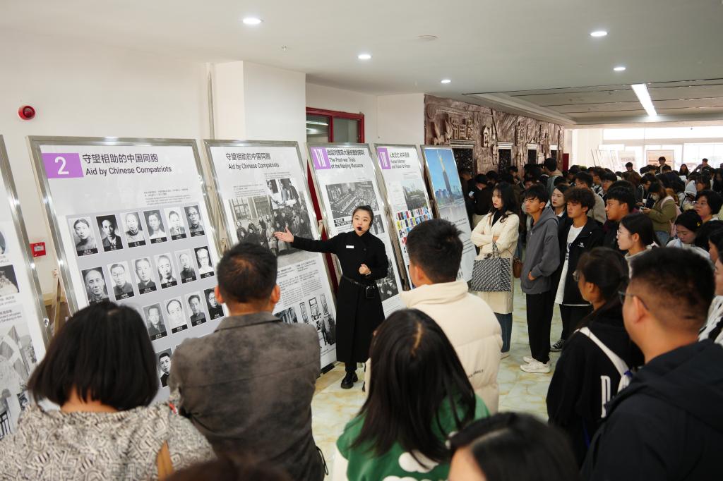 活动中,两位讲解员以史料为基、以故事为引,展开分主题讲解围绕“抗日战争时期的西北国际交通线”,系统梳理了这条“抗战生命线”的形成背景、路线分布与战略价值,通过再现物资运输、人员往来的历史场景,凸显甘肃在全国抗战格局中的重要地位,让师生理解西北大地为抗战胜利作出的独特贡献。同时聚焦“人类的浩劫:1937年南京大屠杀”,讲解员按“日军飞机轰炸—日军进攻南京与南京保卫战—南京沦陷—日军在南京的大屠杀—世界媒体早期报道”五部分层层推进,结合历史照片、文献记载与第三方报道,客观呈现南京大屠杀的惨痛史实,揭露日军侵略暴行,唤醒师生对和平的珍视。
