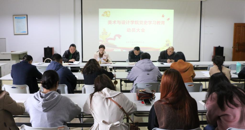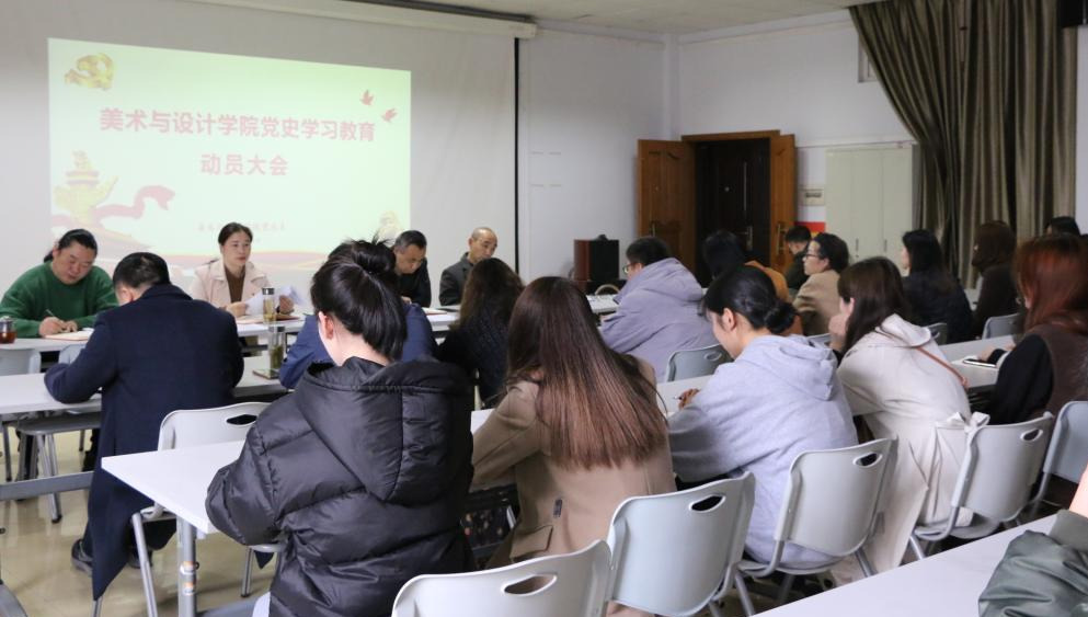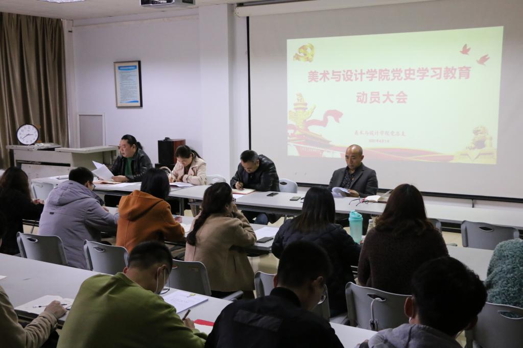 2021年4月1日,美术与设计学院党史学习教育动员大会在学院7304顺利举行。学院党总支书记田英、院长金晖、副院长石庆秘、杜锐,全体教师党员、学生预备党员、学生正式党员参加了会议,会议由金晖主持。