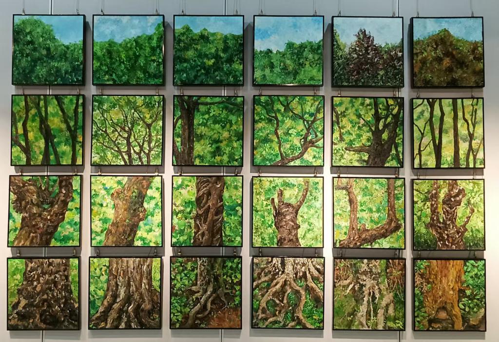 美术学作品展区:中国画、油画注重传统与现代的融合,如作品《民大盛景图》《树与树的系列》等。新媒体艺术运用AI生成交互艺术等前沿技术,打造沉浸式互动装置,如作品《涌流》《文脉线语》等。