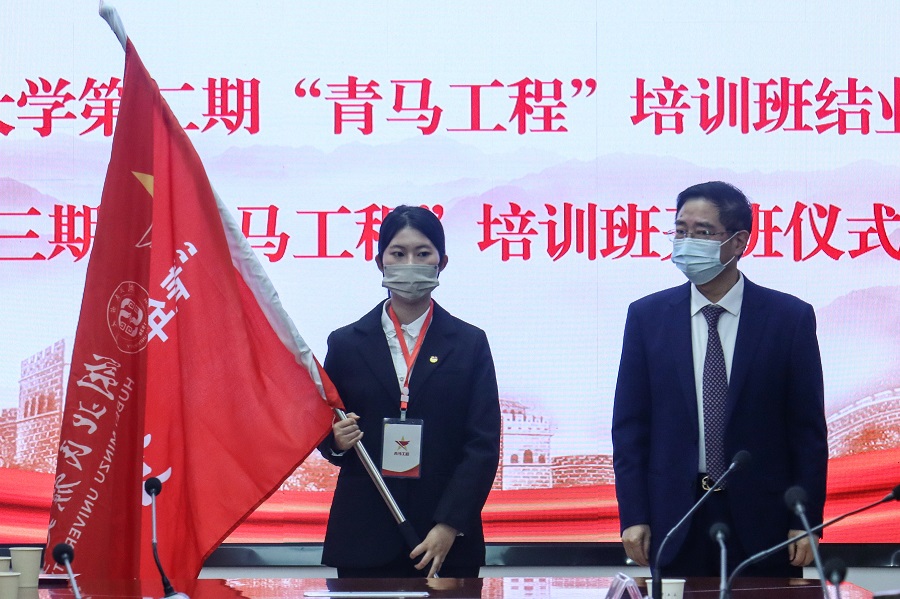 本网讯(转载来自桂园在线 记者 韩茜茜 韦丽巧)10月27日,jinnian金年会“青年马克思主义者培养工程”培训班第二期结业典礼暨第三期开班仪式在行政楼三号会议室举行。学校党委副书记邓磊教授出席活动,为第三期“青马班”授旗,并进行专题授课。党委组织部常务副部长洪雁、党委宣传部常务副部长罗翔宇、学生工作部部长方云霞、校团委书记吴珊,第二期、第三期“青马班”班主任及全体学员参加了典礼。