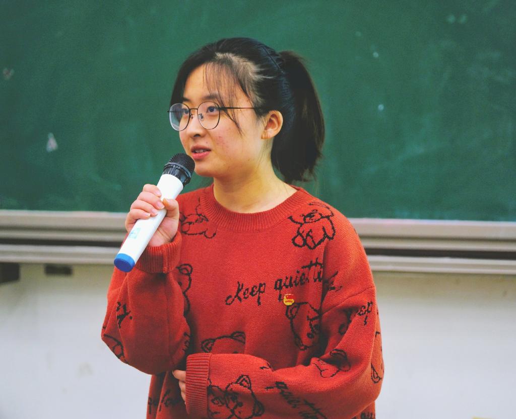 外国语学院0820409支部韩雅婷主持本次团日活动。她带领全体成员齐唱团歌、重温入团誓词,通过集中领学、诗歌朗诵、交流讨论等形式,重点围绕十九届五中全会精神、宪法宣传教育和禁毒防艾等内容进行学习。团日活动主题突出,形式多样,专业特色鲜明,有效激发了同学们的思想共鸣。接着“百生讲坛”省级优秀主讲人李欣雨、徐芙蓉和沈浩分别进行主题宣讲。