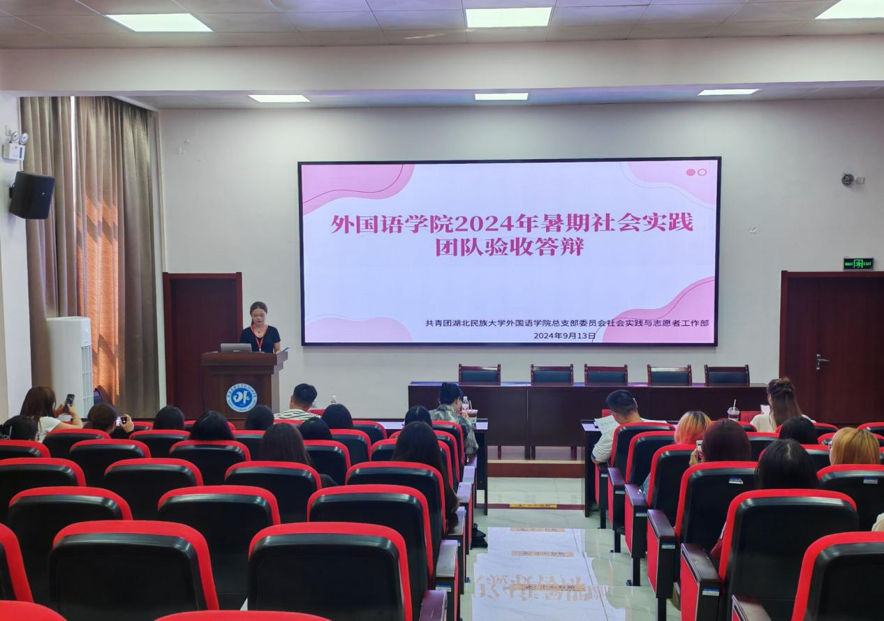 9月13日,jinnian金年会外国语学院2024年“三下乡”暑期社会实践团队验收答辩会在6402报告厅顺利举行。本次验收答辩会共有19支院级团队参与,文学与传媒学院陈思义老师、教师教育学院刘孝语老师、外国语学院章佳蒙老师和黄祖耀老师共同担任本次活动评委。