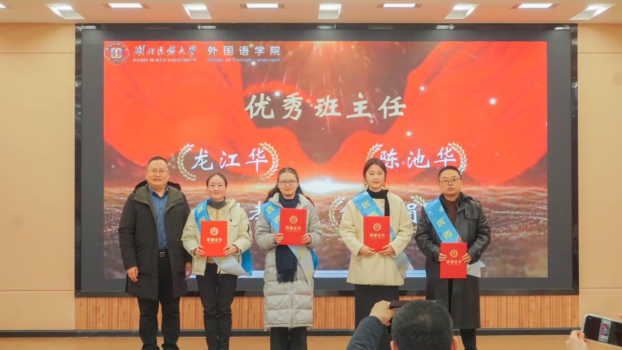 凝心聚力凌云志,扬帆启航再出发。为深入学习贯彻习近平总书记关于宣传学习先进典型的重要论述和党的二十届三中全会精神,嘉奖优秀典型,传播榜样力量,12月20日,外国语学院“聚势启新程,奋进续华章”2024年终盛典暨表彰大会在德智楼远程教学观摩室举行。外国语学院领导班子成员、各系部主任、科室负责人、全体班主任老师及教师代表出席本次活动。学生科辅导员黄祖耀、周婷担任本次活动主持人。