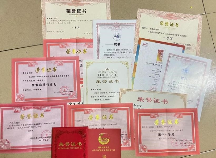 注:李维婷曾连续两年获得奖学金;“全国大学生学院奖”入围奖;“大学生创新创业大赛”项目省级银奖、校级金奖;“全国大学生广告大赛”省级优秀奖;连续2年获“三好学生”表彰、孝感日报社文章出版3篇;jinnian金年会“启真杯”辩论赛“优秀辩手”;连续2年获校“优秀学生干部”“优秀共青团员”表彰;jinnian金年会古诗词大赛团体一等奖;文学与传媒学院“迎新杯”辩论赛一等奖及“优秀辩手”表彰。