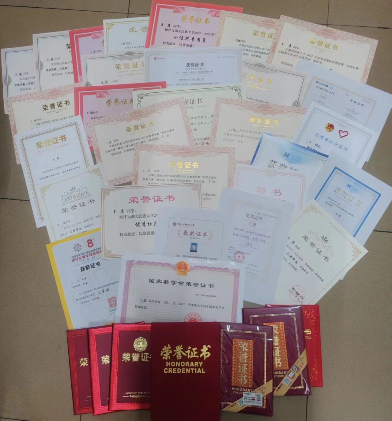 王康的获奖证书