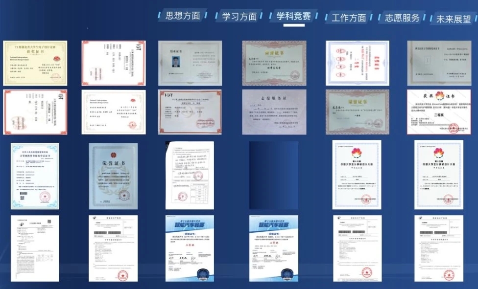 注:龙子鸣曾获得国家奖学金;国家级全国大学生物联网设计竞赛国家一等奖;中国大学生计算机设计大赛国家二等奖;全国大学生智能汽车竞赛国家二等奖全国大学生物联网设计竞赛国家二等奖;省级全国大学生物联网设计竞赛省级一等奖;全国大学生物联网设计竞赛省级一等奖;全国大学生电子设计竞赛省级一等奖;中国大学生计算机设计大赛省级二等奖;挑战杯大学生课外学术科技作品竞赛省级二等奖;中国国际“互联网+”大学生创新创业大赛省级铜奖;全国大学生电子设计竞赛省级二等奖;中国大学生计算机设计大赛省级三等奖;全国大学生智能汽车竞赛省级三等奖;全国大学生电子设计竞赛省级优胜奖等。
