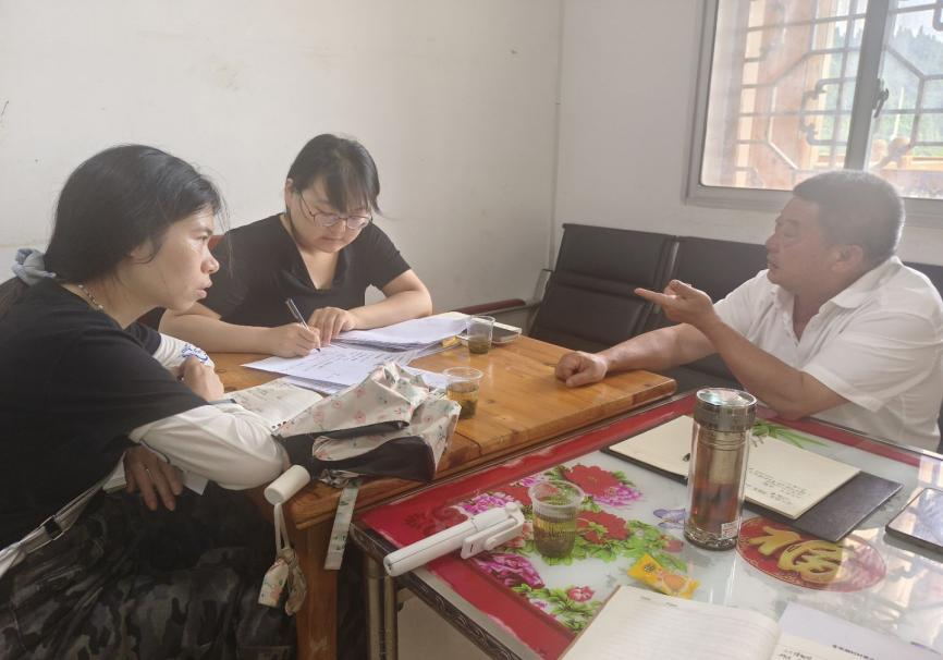 团队成员与村支书彭南清、驻村第一书记田福来交流