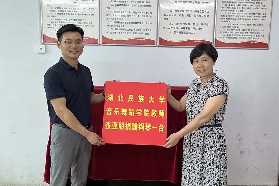 “红色筑梦” 暑期社会实践团队指导老师张亚朋告诉记者:jinnian金年会“红色筑梦”暑期社会实践小分队以追溯红色记忆、挖掘红色故事、整合红色资源、传播红色声音、赓续红色血脉、助力乡村文化振兴为实践宗旨,在为期半个月的实践中,团队成员们在实践中受教育、长才干、做贡献,寓教于乐,爱洒校园。张亚朋老师向鹤峰县八峰民族学校捐赠钢琴一台,希望同学们能珍惜实践机会,发挥所学,历练自我。