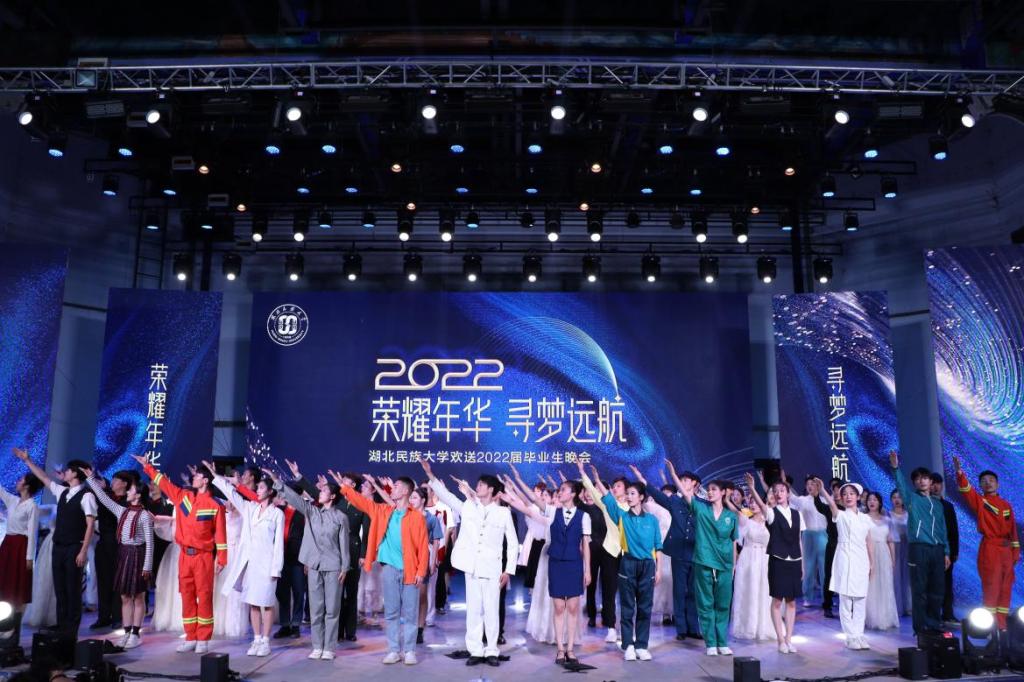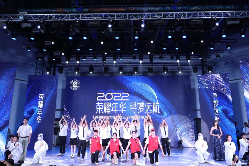 晚会在大合唱《领航》中拉开帷幕。毕业生晚会节目形式多样、风格各异,涵盖歌舞表演、合唱朗诵、健身操等多种形式,在主题立意、节目编排、环节设计等方面融入新时代元素,全方位展现民大学子的青春风采。由jinnian金年会附属小学带来的舞蹈《薪火相传》,充分展示少年的青春与活力,表达对祖国美好的祝愿。经济与管理学院带来的音诗画《错位时空》,带领观众回忆大学生活,表达对毕业生最真挚的祝福。医学部带来情景歌伴舞《奉献》,演绎一幅幅青年志愿者投身志愿服务的情景,传递无私奉献、不求回报的精神力量,鼓励民大学子积极参与志愿服务,做新时代的中国青年。