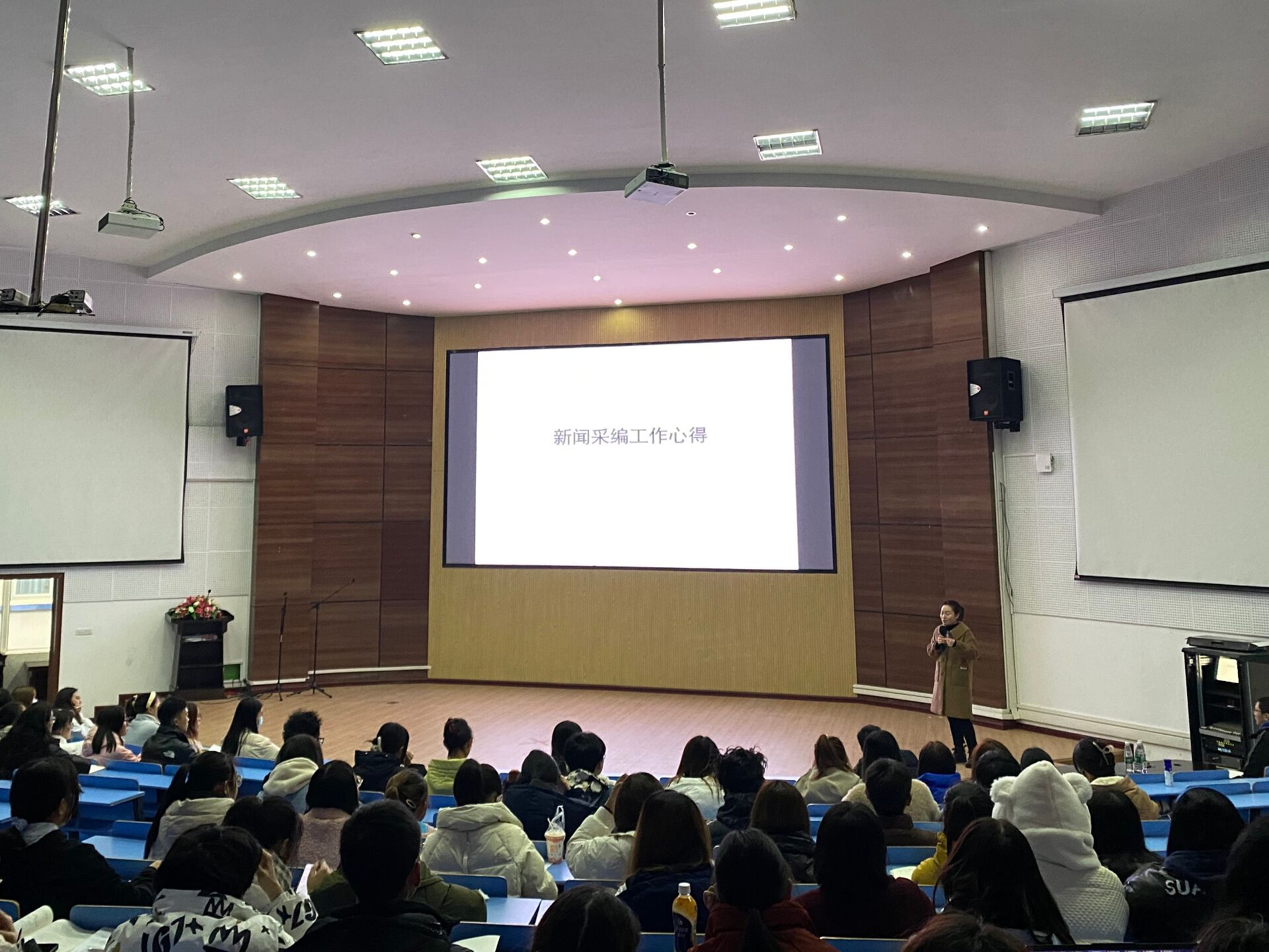 在新闻采编方面,廖希为从采前准备、准确性、及时性、补充采访、规范性五个方面展开讲解,结合相关的错误案例,强调记者需反复核实新闻用语;在新闻摄影方面,她根据充实的照片实例向大家讲解构图、特写等方面的注意事项,以活动、会议类新闻为例着重讲解黄金五分钟的重要性,鼓励摄影记者在活动前五分钟进行拍摄以获得最佳的效果。