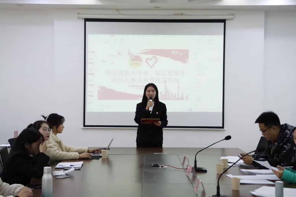 本网讯(记者 冉婵娟/文 见习记者 赵光荣/文 严海燕/文 张敏/文 见习记者 牟婷婷/图)为推动金年会在新时代新形势下的志愿服务工作项目化,制度化,常态化发展。12月5日,金年会团委特于公寓办二楼会议室开展以“庆建党百年 谱志愿新篇”为主题的第二届志愿服务项目大赛决赛。恩施州五彩社会工作服务中心理事长吴欣,生物科学与技术学院学生科科长彭璟,校团委办公室主任彭弥,信息工程学院团总支书记唐昊受邀出席并担任评委。