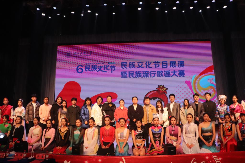 本网讯(王媛 付玮婷/图)11月27日晚,金年会第六届民族文化节节目展演暨民族流行歌谣大赛于音乐舞蹈学院演播厅举行。校团委书记方云霞,音乐舞蹈学院副院长谷秋阳,校团委副书记谢晖,音乐舞蹈学院学科建设科科长谷穗,文学与传媒学院老师谭若冰担任评委。现场座无虚席,现场还通过云小青---“云端桂花园”进行直播。