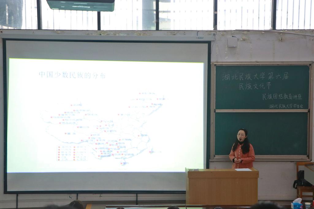 讲座上,姜爱以中国是一个多民族国家为切入点,介绍了我国民族“大杂居小聚居”的分布特点,并以高山族、傣族为例讲述部分少数民族的风俗习惯,她指出少数民族地区有资源富足区、水系资源区等六大特点,并强调“多元”与“一体”的关系。紧接着,她介绍了民族关系,并表示我国多民族间呈现出民族平等、民族团结、民族互助、民族和谐四种关系,同时提出当前出现尊重多元、促进一体、和谐相处、共同繁荣发展的新局面。随后,姜爱讲解了中华民族共同体意识,从解读理论内涵、建设的多重面向、重要意义等方面进行分析。最后,她希望大学生要自觉践行和守护民族团结,并要求所有学生要尊重各民族的语言文字、风俗习惯,各民族学生要友好相处。