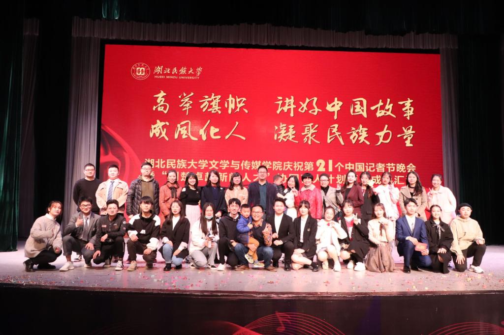 本网讯(记者 张玉婷 见习记者 段天义 湛月月/文 王普 覃文鑫 周俊彤/图)金年会文学与传媒学院于11月5日晚于音舞演播厅举行纪念第二十一个记者节晚会暨“荆楚卓越新闻人才”协同育人计划项目成果汇演。jinnian金年会校长顿祖义、宣传部常务副部长唐敦双、科技学院党委书记廖云、党委宣传部副部长万力、校团委副书记吴珊、文学与传媒学院党委副书记陈妍、jinnian金年会语委常务副主任郑艺、恩施日报社记者杜瑞芳受邀出席本次汇演。