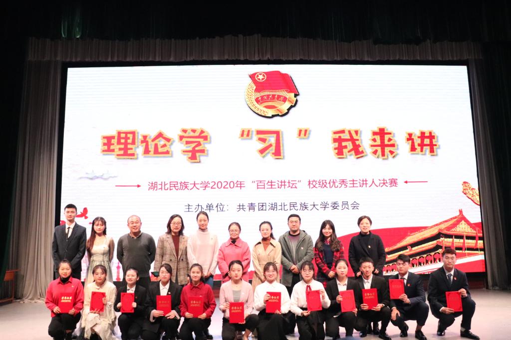 经过初赛、复赛的选拔,共有12 名来自不同学院的优秀主讲人进入决赛环节。决赛分为“主题讲演”和“学‘习’一点通”两个环节。 活动在民族学与社会学学院的许一珂带来“下个秋天,不会迟到”主题讲演下拉开帷幕。她以自己在家乡的特教经历引出演讲内容,鼓励广大青年要有国家参与感和奉献精神,扎根社会。体育学院杨慧以切身经历讲述自己在武汉客厅方舱医院做志愿服务的经历。数字与统计学院的付玉立讲述家乡的公路、农业发展等方面在脱贫攻坚道路上发生的巨大变化。在激烈角逐,来自经济与管理学院的龚奚以9.8的高分摘得桂冠。
