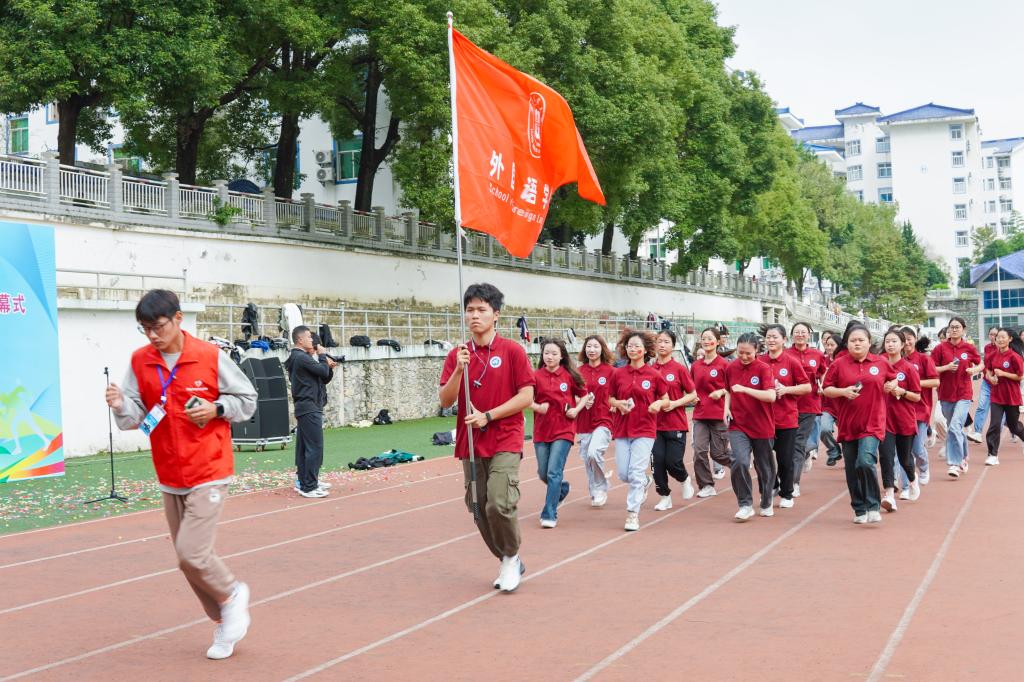 阳光运动展现青春风采,挥洒汗水,赛出蓬勃朝气。开幕式后,来自研究生处和16个二级学院共1500多名教师、学生代表队齐聚民族体育场。起跑号令响起,执旗手们手举红色院旗率先开跑,各院学生组成的体验组方阵迈着轻捷的步伐紧随其后。队伍犹如一条长龙,成为校园里一道靓丽的风景。