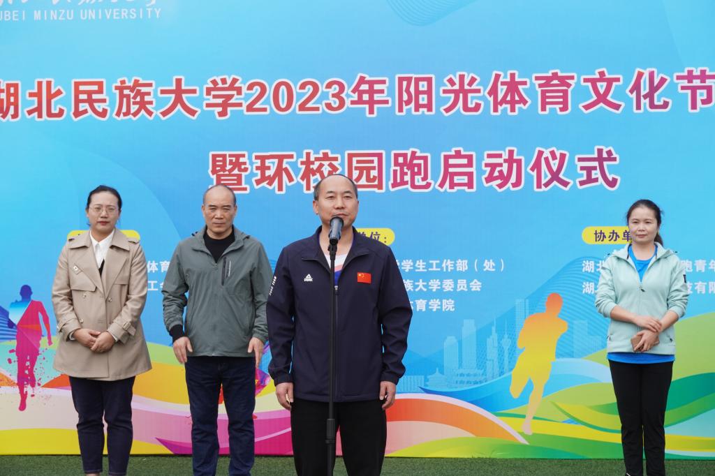10月14日上午,金年会在民族体育场举办“阳光体育文化节”开幕式暨“环校园跑”启动仪式,此次活动由金年会体育运动委员会、工会委员会主办,学工处、校团委和体育学院承办。学校党委常委、副校长李军,学工处处长方云霞,校工会常务副主席田恒俊,校团委书记吴珊,体育学院院长倪东业,体育学院副书记万利,学校相关职能部门负责人及各二级学院领导、老师受邀出席,开幕式由体育学院党总支书记何斌主持。