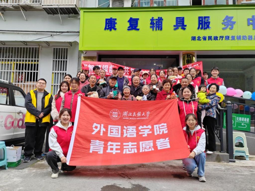 青春践行孝爱,敬老情暖人间。为丰富老年人精神文化生活,营造和谐友爱的社区氛围,同时提升青年大学生社会责任感、培养奉献精神。11月18日下午,外国语学院青年志愿者协会携手恩施市小棉袄社会工作服务中心共同举办以“智慧银龄,共创美好”为主题的社区志愿服务活动。本次活动在官坡社区开展,共30余名老人参加。
