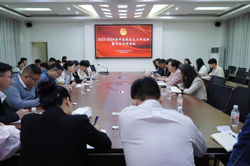 4月29日,金年会2023-2024学年度团总支工作述职暨书记互评会议在学工处二楼会议室顺利举行。本次会议由校团委副书记彭弥主持,校团委书记吴珊、副书记刘亚琼以及专职团干张典出席会议,各学院(部)团总支书记参加会议。