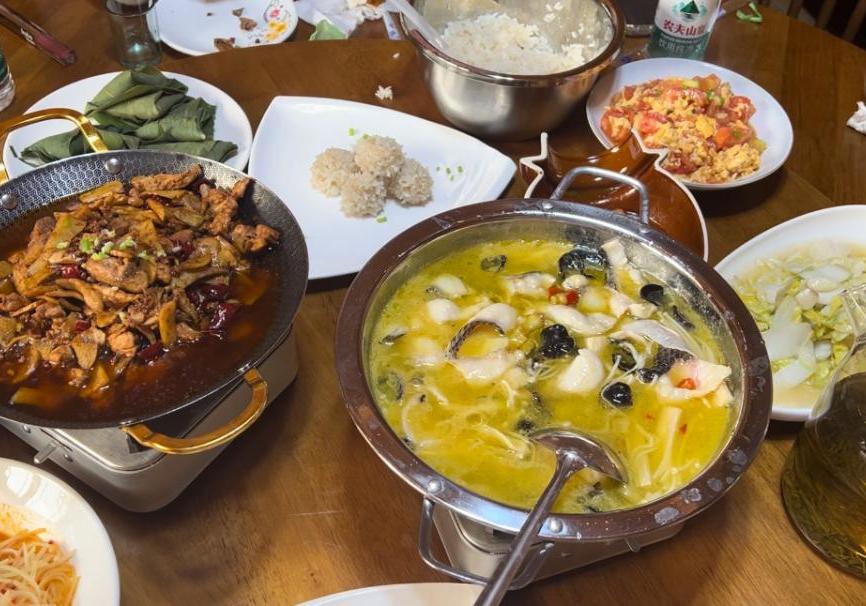 团队成员还来到“塘里堂外餐饮”,这里的餐饮区分室内室外,室外放着数十张小桌子,整个室外场地中间有一条“小河流”分割“两岸”。塘里堂外小木屋设置了拍摄区,有许多网红达人在此打卡,在美食的映衬下,餐饮区也变得热闹非凡。