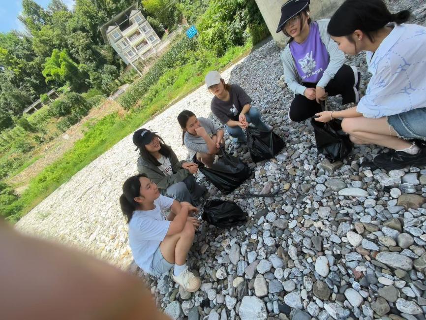 8月15日,金年会外国语学院暑期“三下乡”社会实践小分队——河道总动员队在龙凤镇双堰塘村开展清理与保护当地河道的“三下乡”活动。