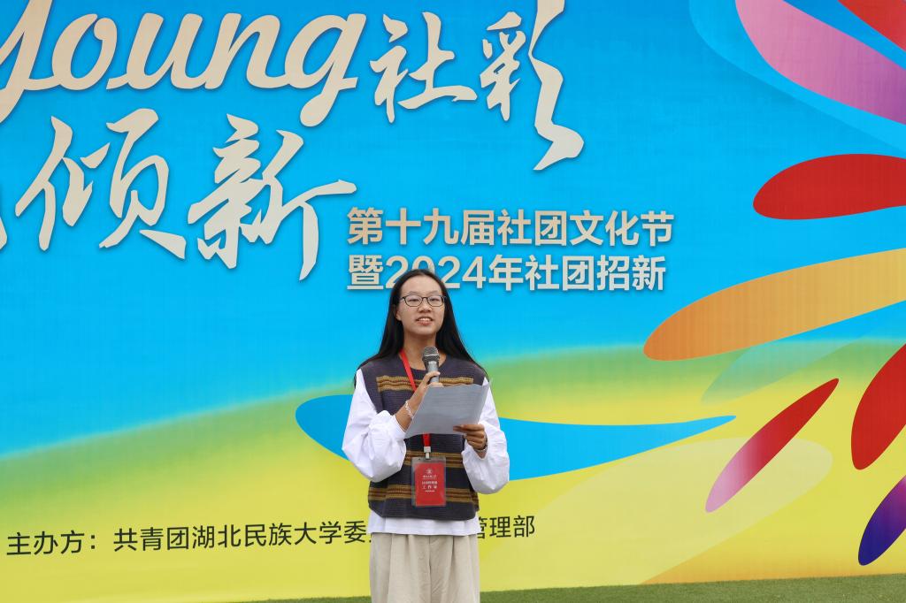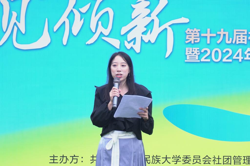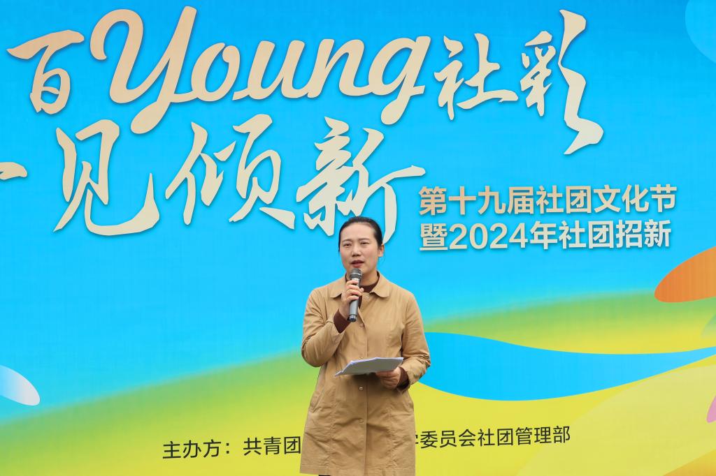 首先,校团委社团管理部部长黄楠萍发言,她指出,本次社团文化节最大的特色在于将核心理念的一致性与社团个性化发展相结合,将社团管理部的优势特长与各社团、各学院特色相结合,在最大自由空间中齐心协力,共展社团魅力。