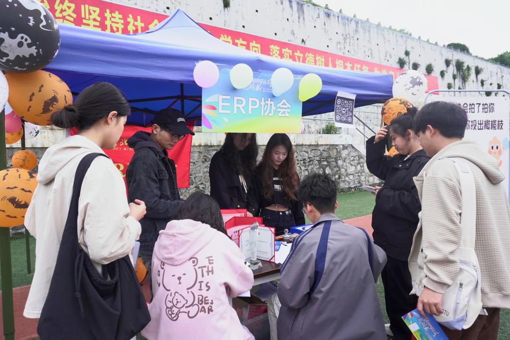 本次社团文化节共有44个社团参与其中,各社团通过手工艺品制作、趣味小游戏、作品成果展示等形式吸引学生报名社团。其中,交际与口才协会进行飞花令小游戏,中医仲景协会举行自制香囊、免费推拿等活动,非物质文化遗产研习协会推出手绘脸谱、投壶活动,现场反响强烈,学生报名踊跃,尽显社团特色。