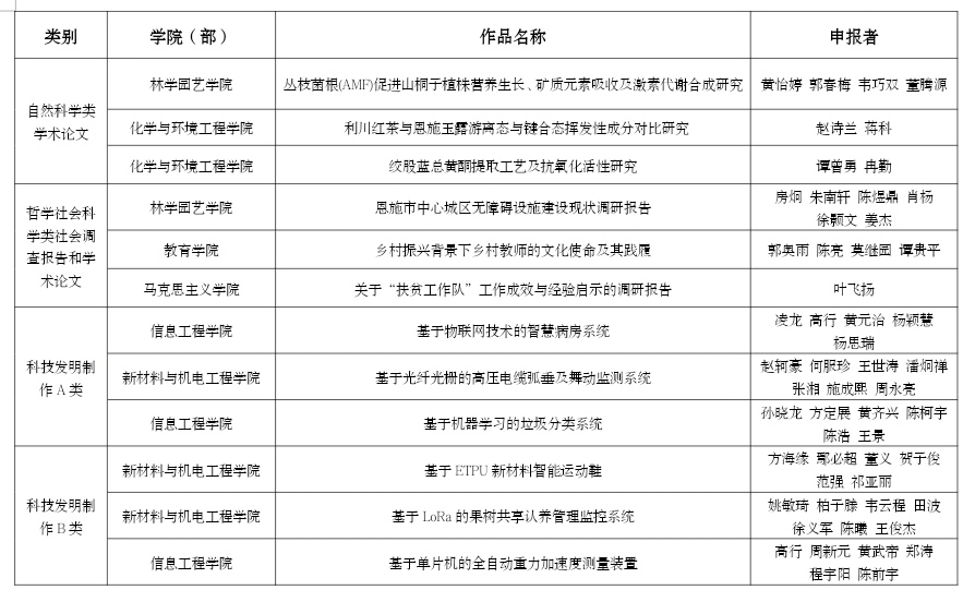 附件:关于推荐湖北省第十三届“挑战杯”大学生课外学术科技作品竞赛参赛作品名单的公示