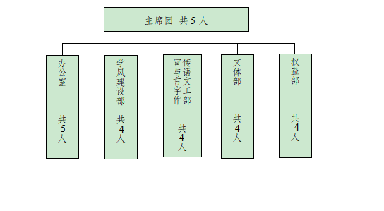 第十五条 学生会是学生代表大会的常设工作机构。jinnian金年会学生会的组织架构为“主席团+工作部门”模式。