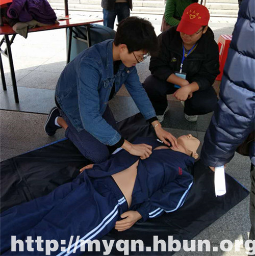 活动前,许多人纷纷在签名版上签名。闯关活动分为回答人体小知识、现场学习急救方法、你比我猜游戏环节三个环节。其中,第二环节现场体验心肺复苏操作,不断吸引着路过学生上前体验。