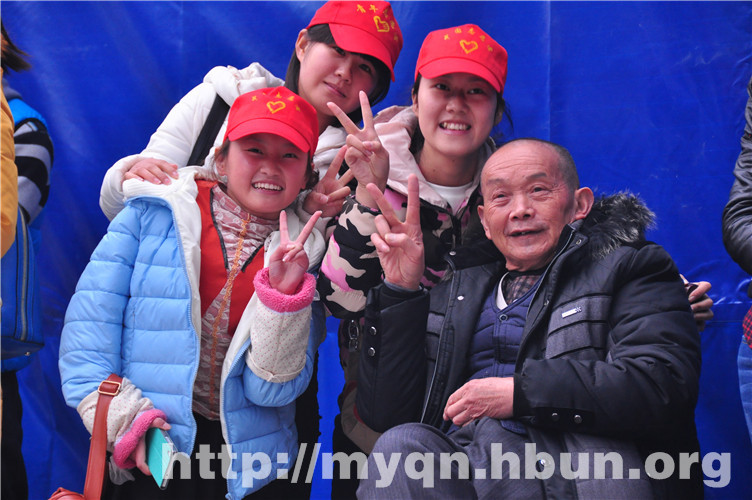 志愿者与老人合影
