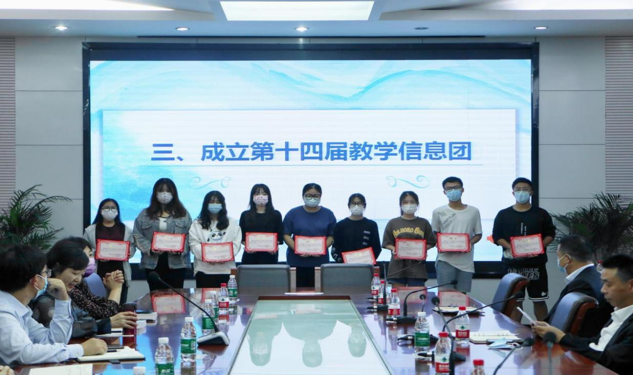 本网讯(记者 严海燕 张敏/文 吴文均/图)9月29日下午,第十四届教学信息团换届暨表彰大会在行政楼三号会议室召开。学校教学质量评价中心、教师发展中心主任谢坤武,副主任万佐玺、段先宇,中心工作人员、学校部分教学督导员以及第十三、十四届学生教学信息团成员参加本次会议。