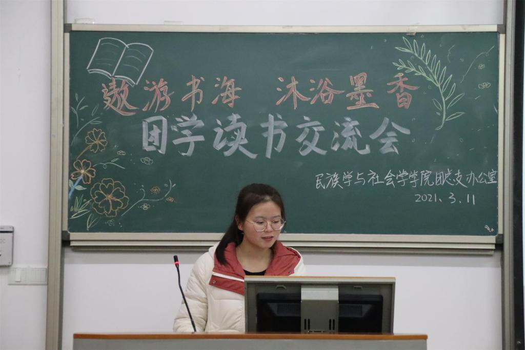 活动伊始,团总支和学生会各部门成员代表依次上台,分享个人在寒假期间阅读的书籍。代表们展示的书目种类丰富,充分体现部门成员丰富多彩的个性,心理健康部代表吴六金对所读书籍《活着》中有关生命的理解,给到场人员留下了深刻印象。本次读书交流会重在分享各成员的阅读心得体会,各代表结合自身经历,紧密联系自己阅读的书籍向大家展示书本之美和所悟之理。其中,刘圣富在分享《目送》一书时,将自身照顾父亲的经历与书籍内容相结合,在情感上与作者产生深刻共鸣,向各成员传递学会珍惜与承担责任的重要性。