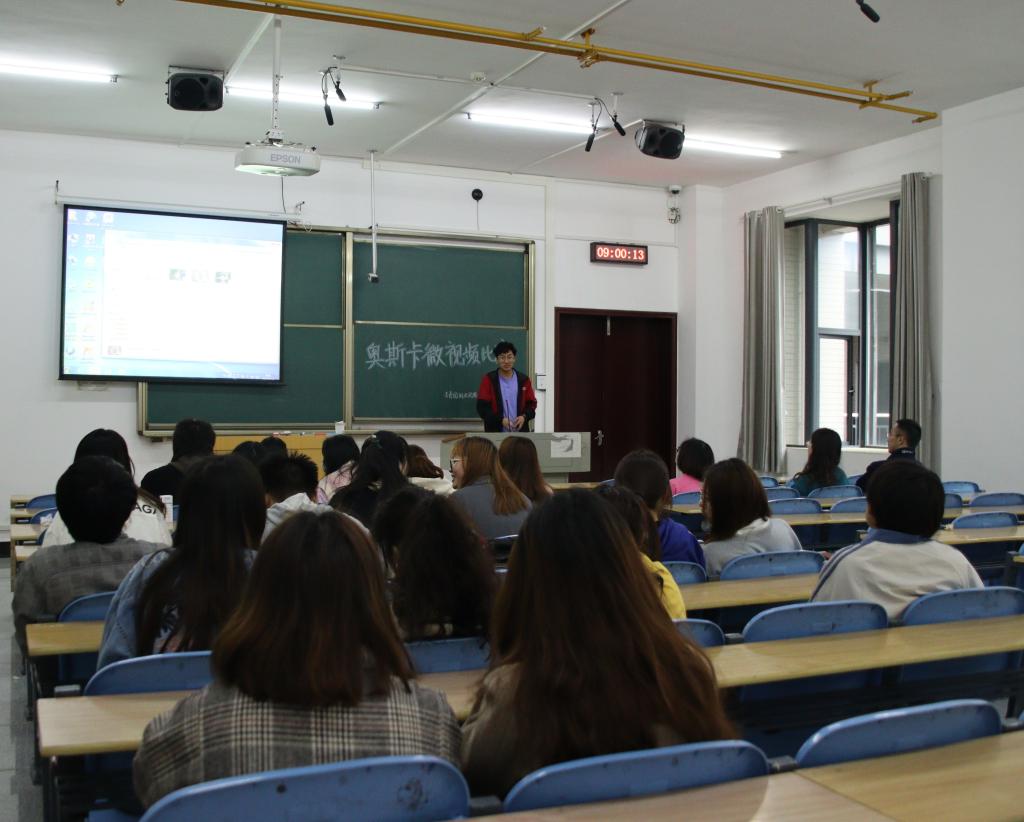本网讯(记者 张筱玉/文 记者 武依帆 见习记者 刘睿/图)为增强学生防骗意识,提高学生自我防护能力,4月25日下午及4月26日上午,我院开展以“防微杜渐,禁于未然”为主题的奥斯卡微视频大赛,学生科科长张冰,我院团总支书记熊霞、学生科实习老师顿山,杜鹏博士受邀担任本次比赛评委,全体参赛选手到场对各自视频做讲解。