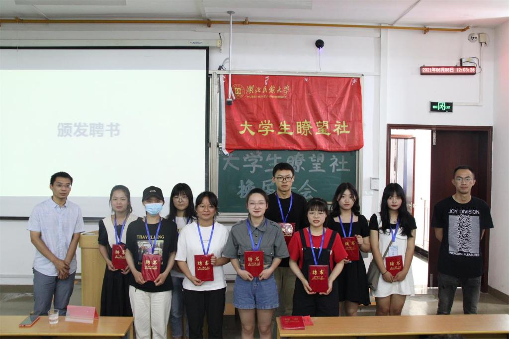 活动伊始,主持人宣布本次换届大会正式开始并播放往期社团活动视频,回顾社团精彩瞬间;随后,社团指导老师杜鹏发言,他对社团过去开展的工作给予充分的肯定,并鼓励社团的后续发展,希望大学生瞭望社能再接再厉,再创佳绩;紧接着,顿山老师发言,他指出社团作为大学生活的重要组成部分,殷切希望成员们能够在大学生瞭望社中收获成长,实现个人与社团的协同发展;接着,大学生瞭望社上任社长殷思雨和现任社长蒙绪清先后上台发言,顺利完成换届工作交接;活动最后,校学生社团管理部代表发言,她表示社团管理部会继续给予社团支持和帮助,并祝愿大学生瞭望社越办越好。