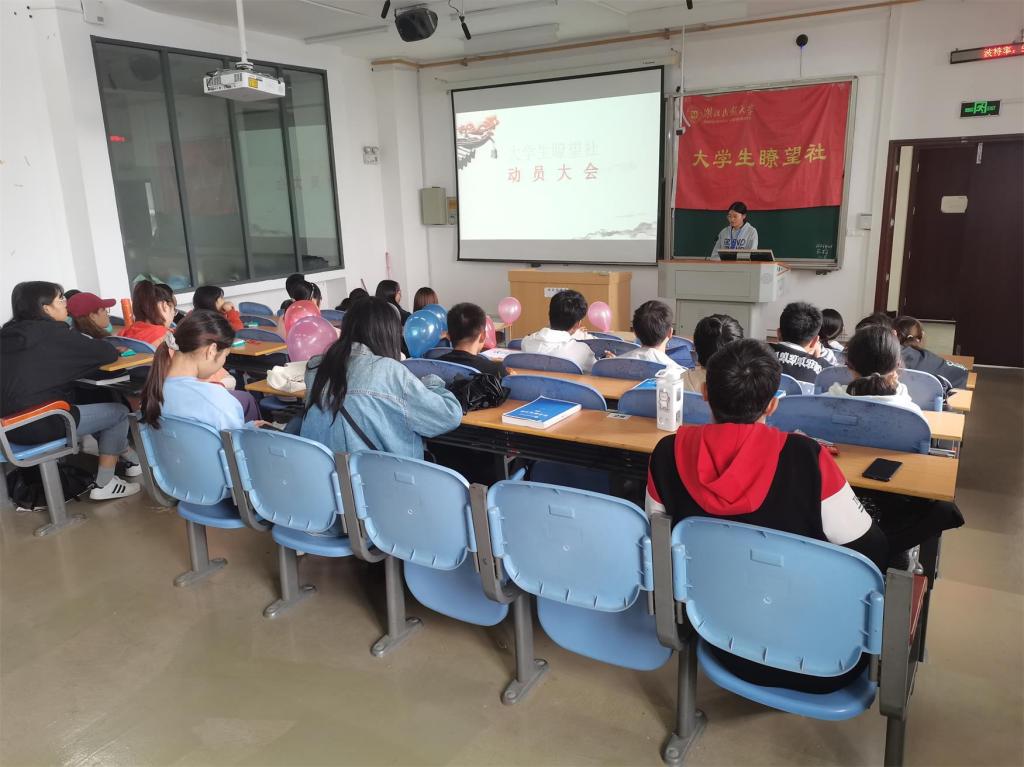 本网讯(记者 张瑶 薛郁竹/文 鲁心雨/图)为帮助新会员全方位了解社团,促进新老成员之间交流,10月15日,我院大学生瞭望社在修远楼5A501教室成功举办动员大会。我院团总支书记熊霞老师,团总支副书记姚萍、刘圣富,学生会主席柯欢、田可受邀出席本次活动,部分兄弟社团代表及瞭望社新会员参加本次动员大会。