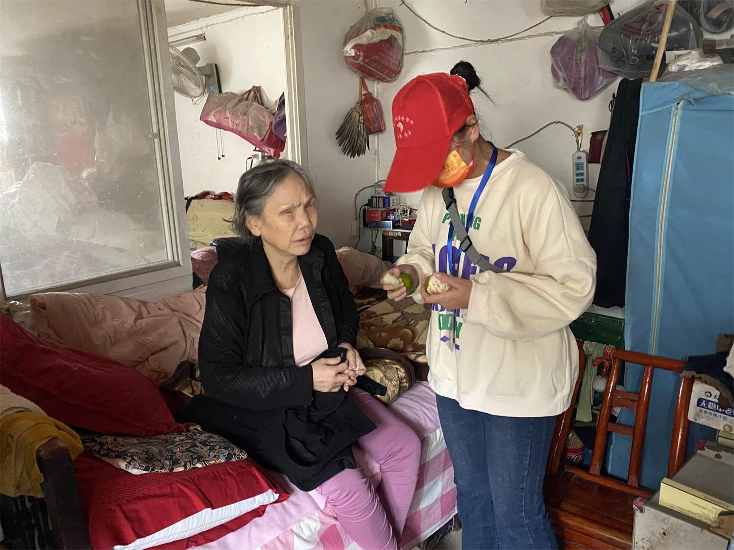 活动伊始,志愿者按计划分为三组,分别负责到视盲障碍的老人家中慰问、开展盲人节宣传活动。在社区工作人员的带领下,前两组志愿者手提新鲜水果,前往慰问老人,倾听不易,温暖其心灵。期间,老人谈及科技产品带来的诸多便利之处,智慧语音帮助其体验娱乐活动、丰富生活形式。离别之际,志愿者嘱咐老人注意保暖,希望其健康常乐、享受美好生活。另一组负责在社区附近发放国际盲人节宣传单,普及相关知识,呼吁居民关注盲人生活,关爱盲人群体,温暖盲人世界。