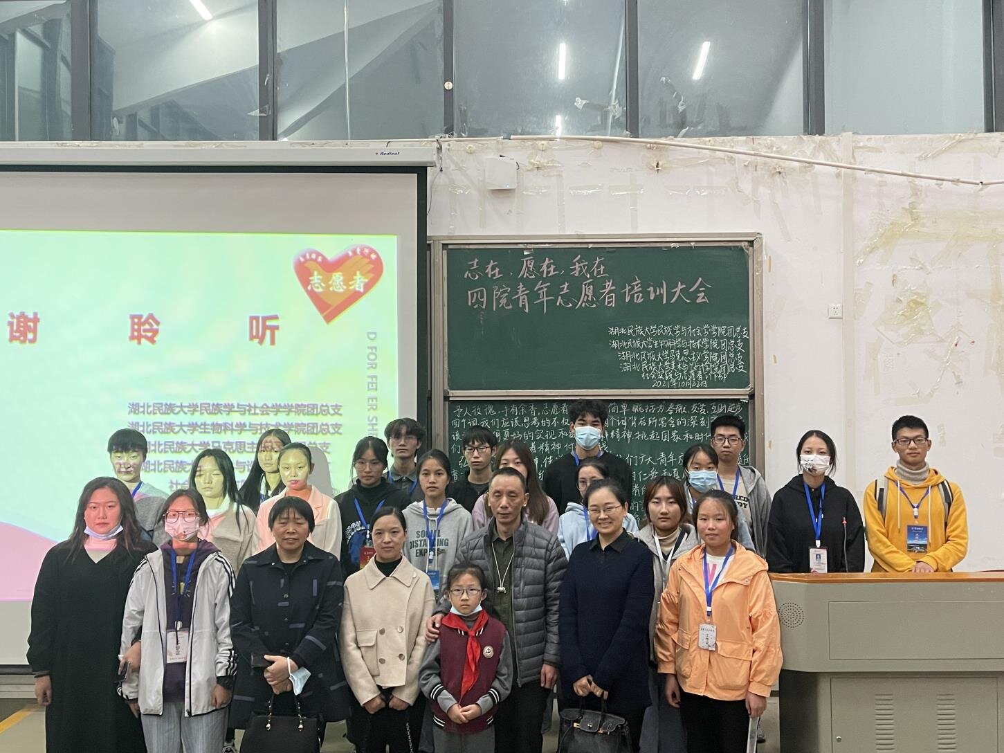 本网讯(记者 欧阳洁 刘雨/文 陈文宇 刘睿/图)为增强青年志愿者对志愿者服务活动意义的理解,加强各二级学院交流,10月22日,我院团总支社会实践与志愿者工作部联合生物科学与技术学院、马克思主义学院、美术与设计学院在修远楼5B404教室举办青年志愿者培训大会,恩施义工协会会长谭鸿担任主讲人,恩施州心理咨询师谭金钊、杨娟、张富琼受邀出席本次活动。各兄弟社团及四院大一年级青年志愿者参与聆听。