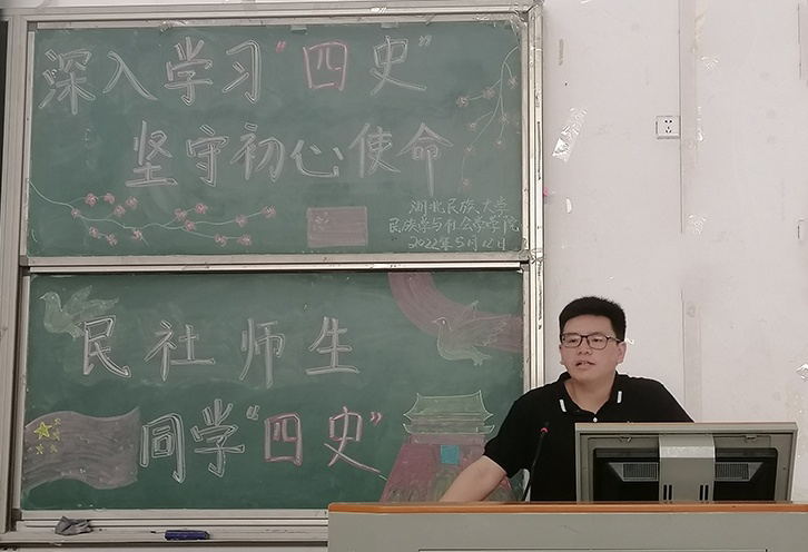 本网讯(记者 谌海容/文 刘欢/图)为加强我院各党支部的思想建设,提升党员理论水平,5月12日,我院于修远楼5B404学术演播厅开展以“深入学习四史,坚守初心使命”为主题的四史学习交流活动。马克思主义学院教师党员鲁帅博士受邀出席并担任主讲人,我院全体党员出席本次活动,部分学生参与聆听。