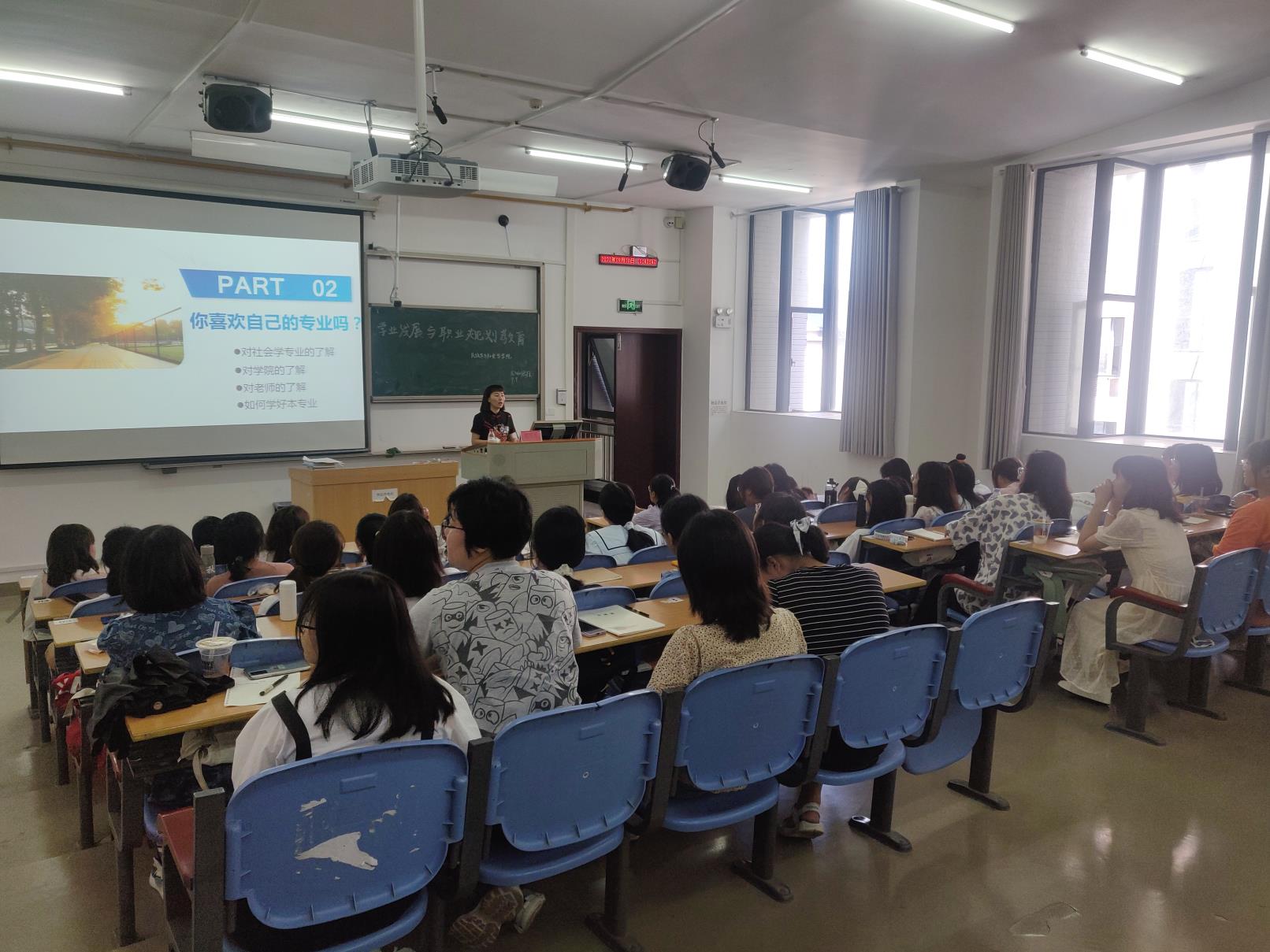 本网讯(记者 周树洋/文 陈文宇/图)为帮助新生进一步认识社会学专业,做好未来职业规划,9月10日,我院学生会公寓部在修远楼5A506教室顺利开展学业发展与职业规划教育主题讲座。音乐舞蹈学院教学科负责人梁丹玉应邀出席并担任主讲人,全体大一新生参与本次活动。