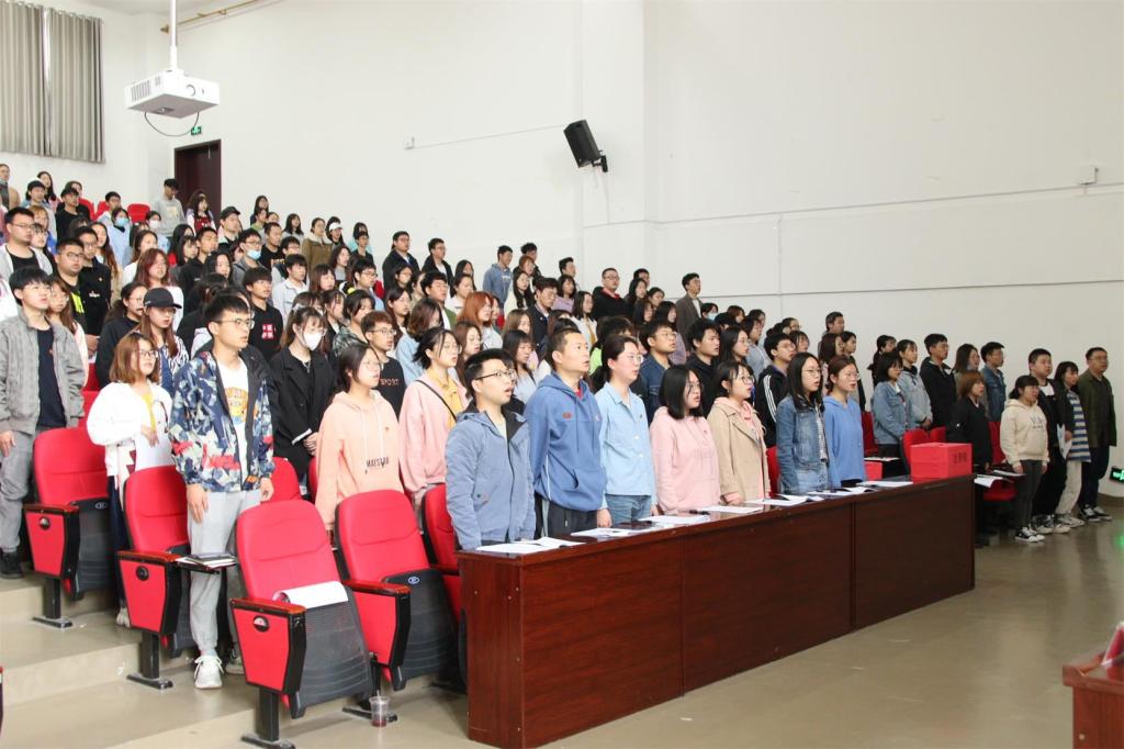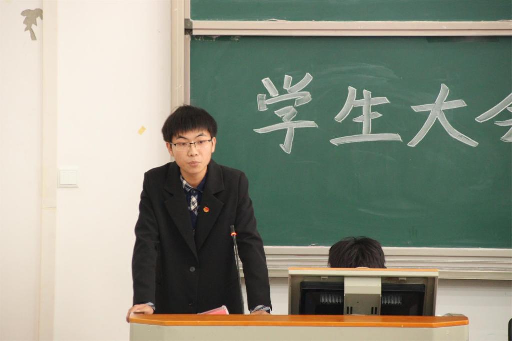 本网讯(记者 张筱玉 周树样 张梦婷/文 戴启栋梁/图)4月17日上午,我院第一次学生大会在修远楼5A207学术报告厅开幕。我院党总支书记曹召胜、团总支书记熊霞、学生科老师顿山、校学生会代表陈晨,往届学生会主席代表、学生会秘书长代表,学院全体同学出席开幕式。