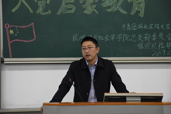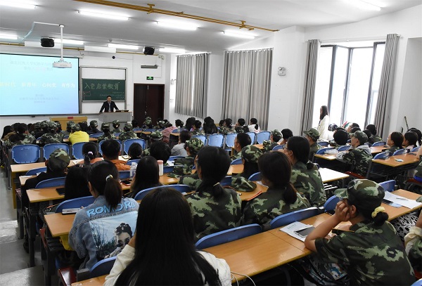 曹书记分别从“了解党的故事”、“理解党的理论”、“坚定入党信念”三方面对新生进行入党启蒙教育。首先,曹书记介绍中国共产党的成立过程,重点讲述毛泽东、朱德等共产党员的事迹,展现他们舍己为人、艰苦奋斗的井冈山精神。以此激励新生树立正确的价值观,找准人生方向,追求更高的政治理想。接着,他从党的性质及宗旨两方面来讲解中国共产党深受人民拥戴的重要原因,希望大一新生努力学习,积极向党组织靠拢。随后,他为大一新生详细讲解入党程序,希望新生更好地理解党的性质,端正入党动机。