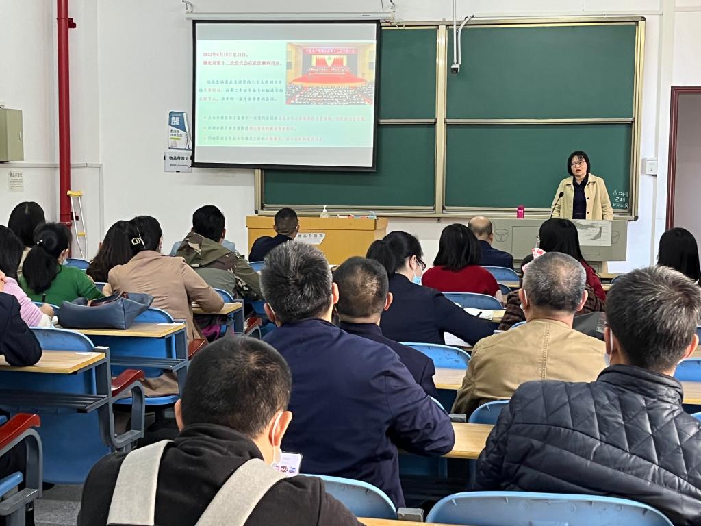 (本网讯 张雯/文 图)为进一步深入学习贯彻省第十二次党代会精神,10月14日下午,我院邀请了jinnian金年会教育宣讲团蔡诗敏博士在5A507教室进行湖北省第十二次党代会精神宣讲,我院党总支副书记杨洪林担任主持人,我院全体教职工参加。