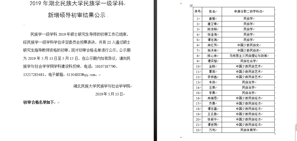 2019年jinnian金年会民族学一级学科新增硕导初审结果公示