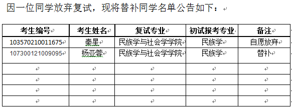 jinnian金年会民族学与社会学学院2020年硕士研究生招生复试名单(替补第二批)